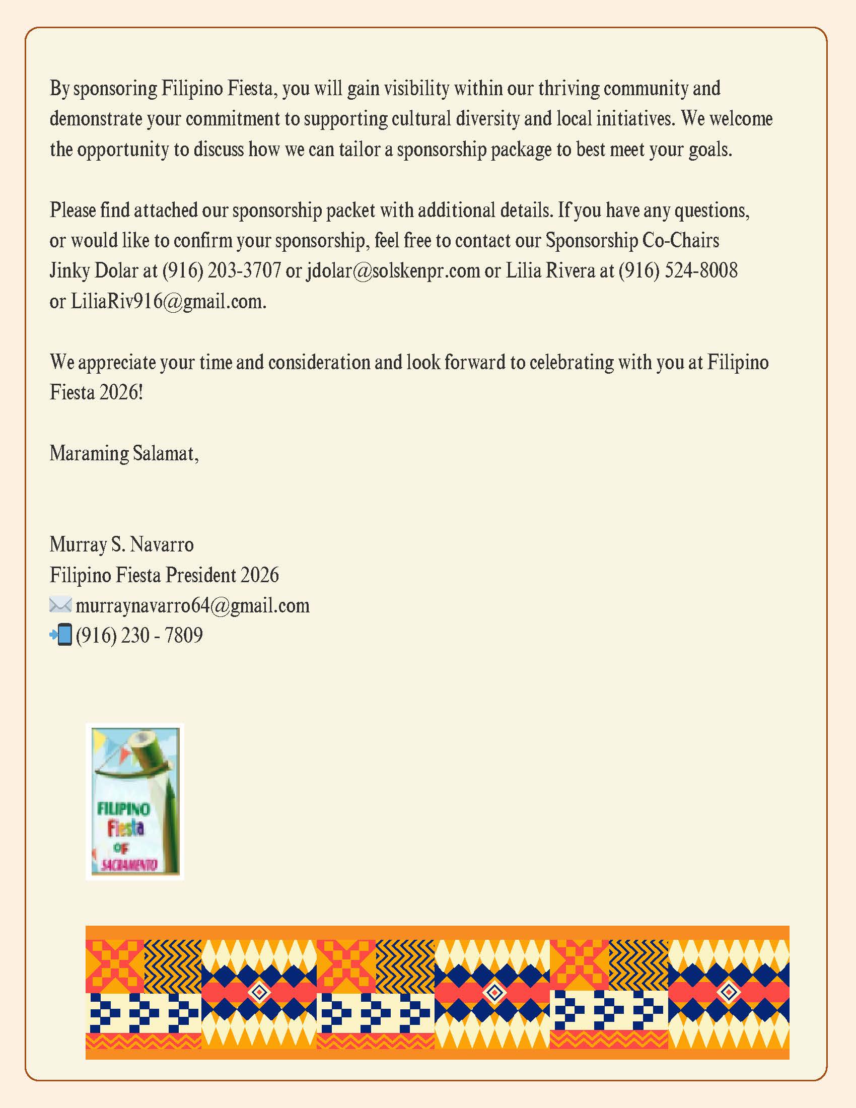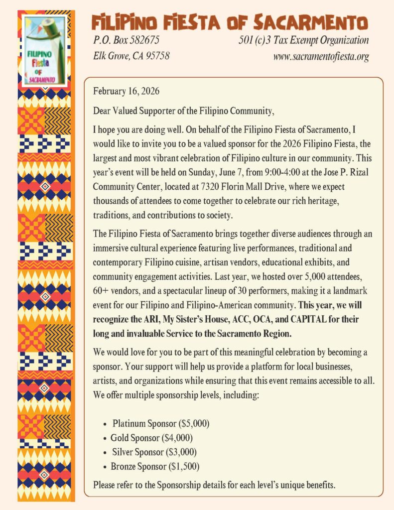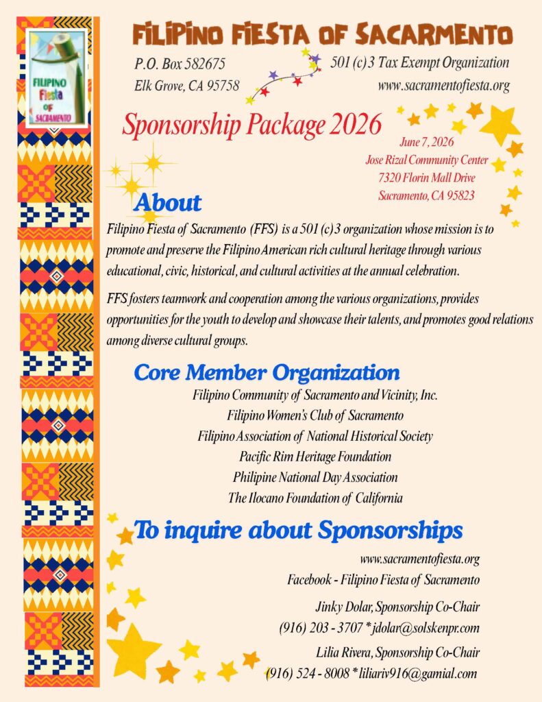 Rosie Dauz (916) 300-5438 or email sacramento.filipinofiesta@gmail.com