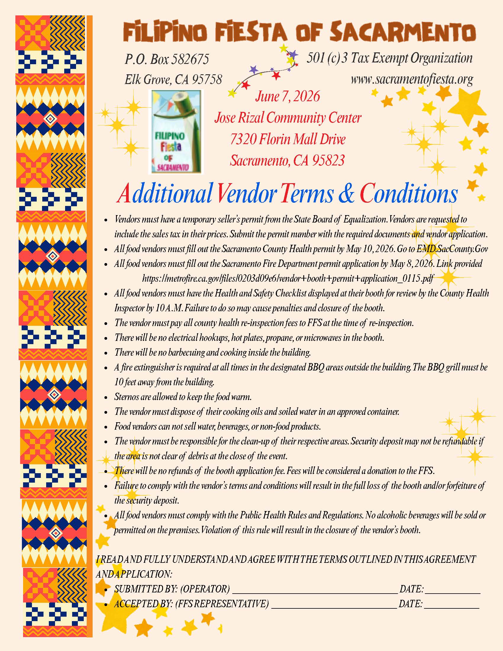 We look forward to having you as a vendor. Thank you for your participation and support in making the Filipino Fiesta 2026 a success!